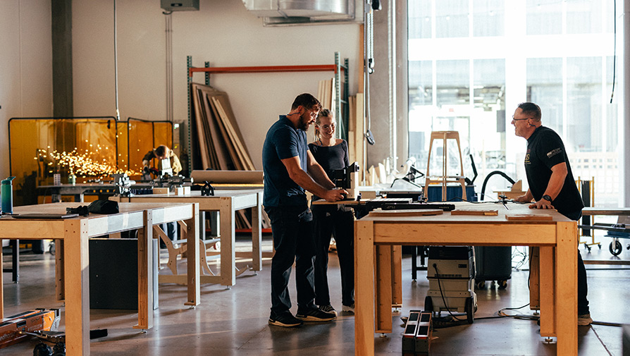 The Ruth Tan Lim Production Shop houses all wood and metal fabrication featuring all of the newest state-of-the-art tools and equipment such as a 4x8 ShopBot CNC Router, Waze Water Jet, 4x4 Plasma Table, welding capabilities and much more.
